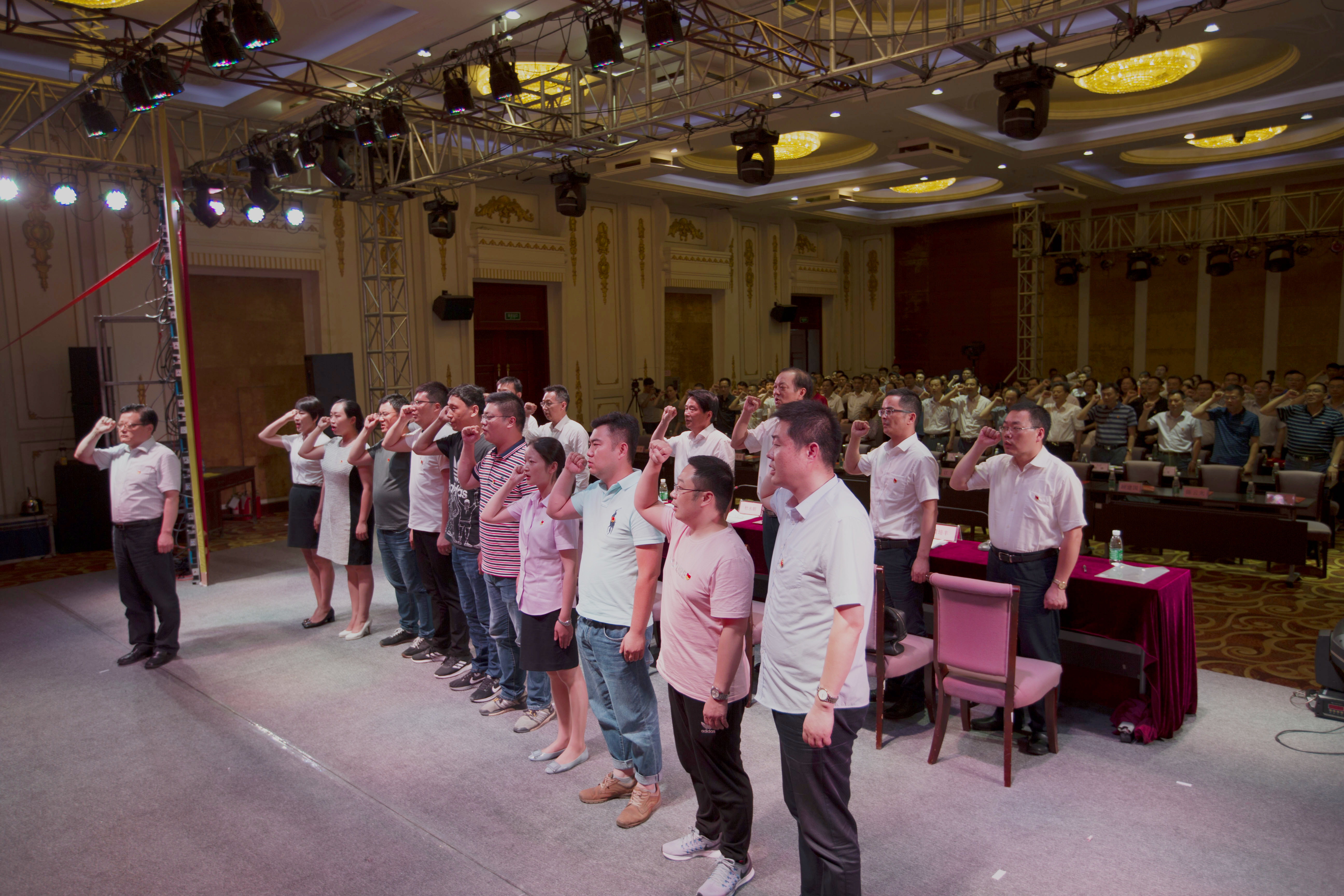 產(chǎn)控集團(tuán)黨委副書記、副董事長(zhǎng)、總經(jīng)理陸強(qiáng)新帶領(lǐng)新黨員進(jìn)行入黨宣誓儀式,全體與會(huì)黨員莊嚴(yán)起立,舉起右拳,重溫入黨誓詞。