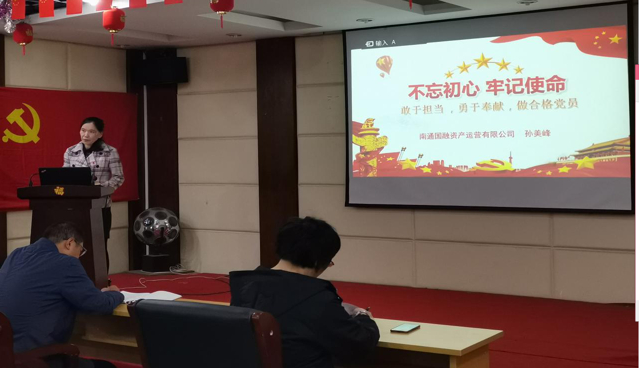 10月24日,南通國(guó)融資產(chǎn)運(yùn)營(yíng)有限公司黨委委員、工會(huì)主席孫美峰結(jié)合“不忘初心、牢記使命”主題教育給公司全體員工上了一堂題為“敢于擔(dān)當(dāng),勇于奉獻(xiàn),做合格黨員”的專(zhuān)題黨課。 孫美峰引經(jīng)據(jù)典向大家詮釋了什么是擔(dān)當(dāng)奉獻(xiàn)、共產(chǎn)黨員的擔(dān)當(dāng)奉獻(xiàn)精神、如何敢于擔(dān)當(dāng)勇于奉獻(xiàn)。