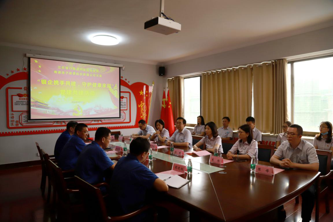 為豐富黨建形式,提高黨建工作水平,延伸工作平臺,8月27日,江蘇銀行南通分行黨委委員、副行長黃世成率江蘇銀行南通開發(fā)區(qū)黨支部與南通揚子碳素股份有限公司黨委開展“銀企攜手共建,守護健康家園”黨建共建活動。揚子碳素黨委書記、董事長劉明、黨委委員、副總經(jīng)理、財務(wù)總監(jiān)王建華、黨委委員、副總經(jīng)理、工會主席周曉紅、黨委委員、紀委書記陸輝以及各黨支部書記參加此次活動。