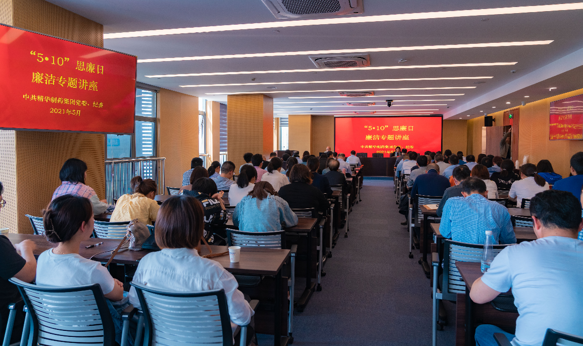 為了深化精華制藥“五專(zhuān)題五實(shí)踐”黨史學(xué)習(xí)教育,加強(qiáng)黨員干部廉潔從業(yè)意識(shí),提高拒腐防變能力,5月8日下午,精華黨委在22樓大會(huì)議室開(kāi)展了“學(xué)百年黨史?講廉政故事”專(zhuān)題廉政講座活動(dòng),公司黨員、中層以上管理人員參加本次活動(dòng)。
